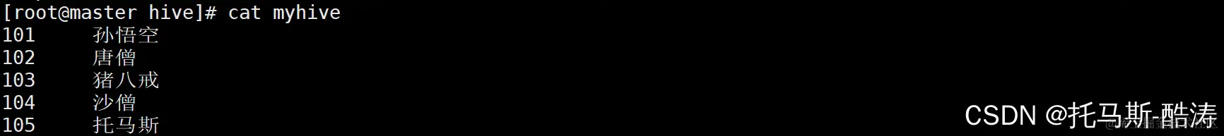 [root@master hive]# hadoop fs -put /input/hive/myhive /output/hive/