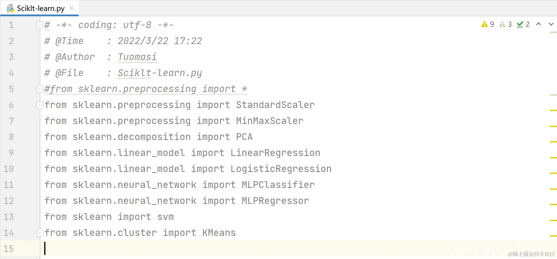Scikit-learn 是机器学习领域非常热门的一个开源包,它整合了众多机器学习算法,基于Python语言编写而成,可以免费使用。