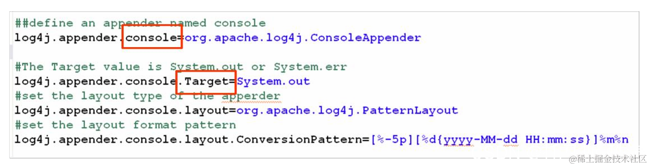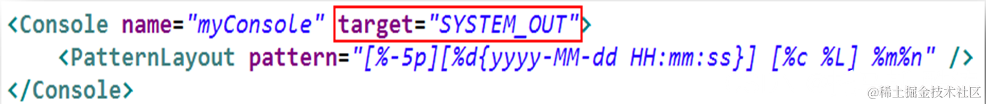 Target:控制输出到控制台的使用目标。其值为 System.out 或 Sytem.err。