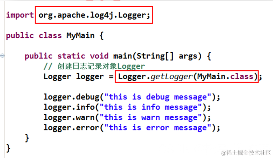 注意,Logger 为 org.apache.log4j 包中的类。