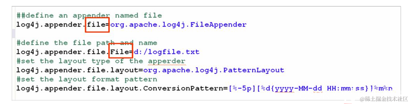 日志属性文件由两个对象组成:日志附加器与根日志。