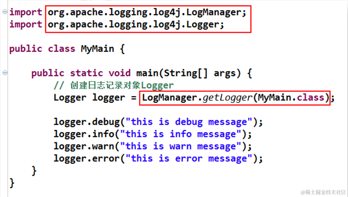 注意,Logger 与 LogManager 均为 org.apache.logging.log4j 包中的类,非 org.apache.log4j包中的。