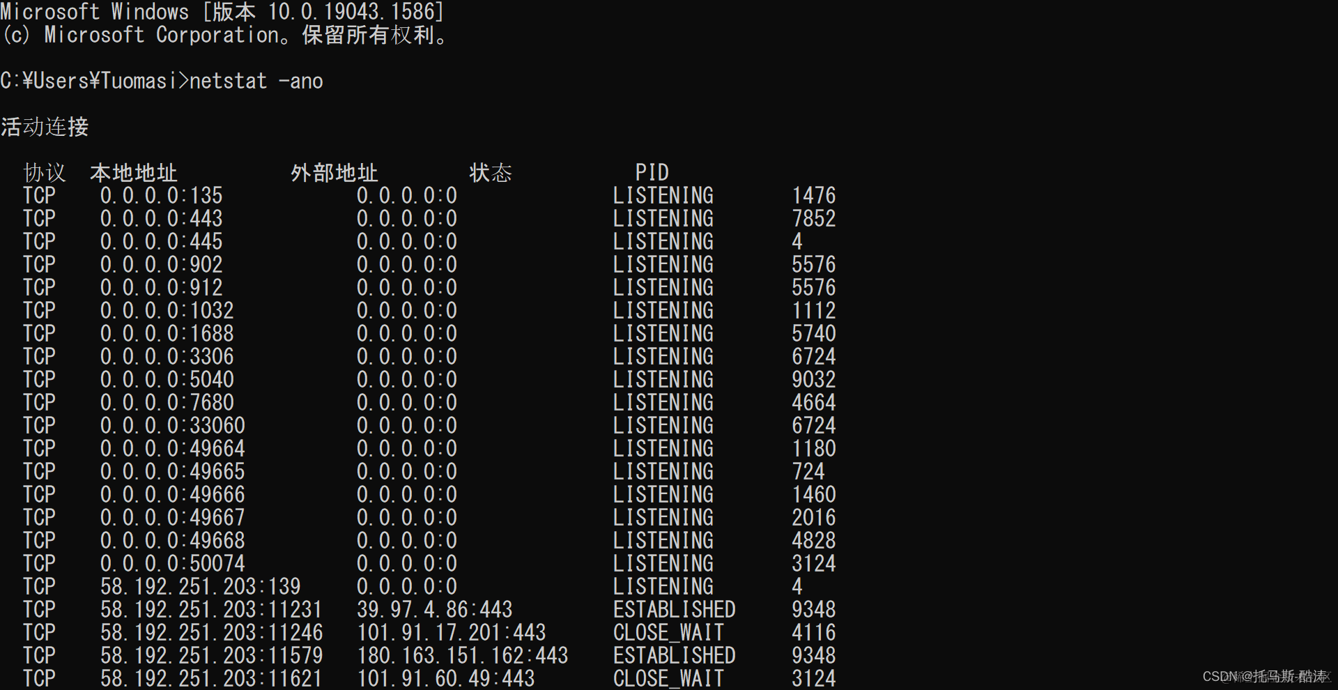 dos命令窗口运行netstat -ano 看后面的进程,结果没有