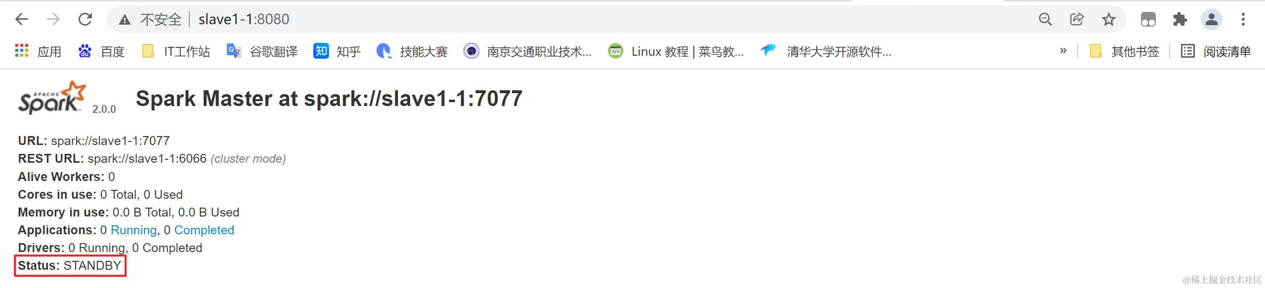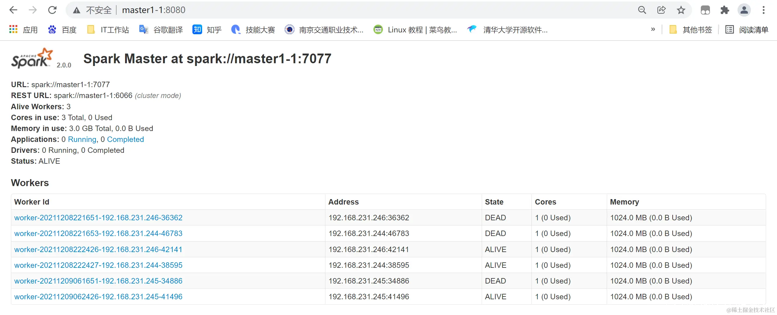 2、浏览器输入master1-1:8080查看web UI
