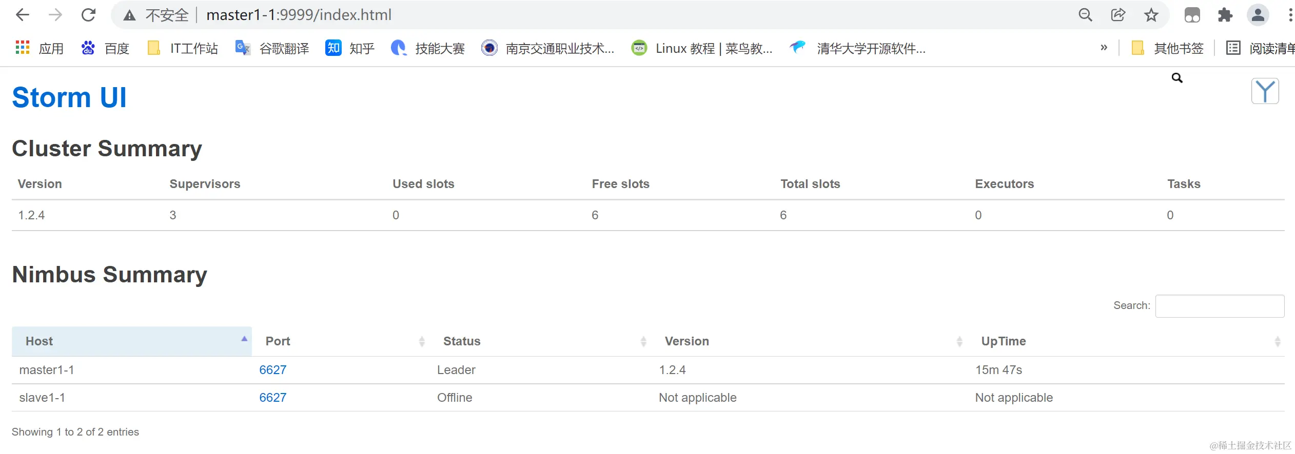 1、浏览器输入master1-1:9999查看集群状态