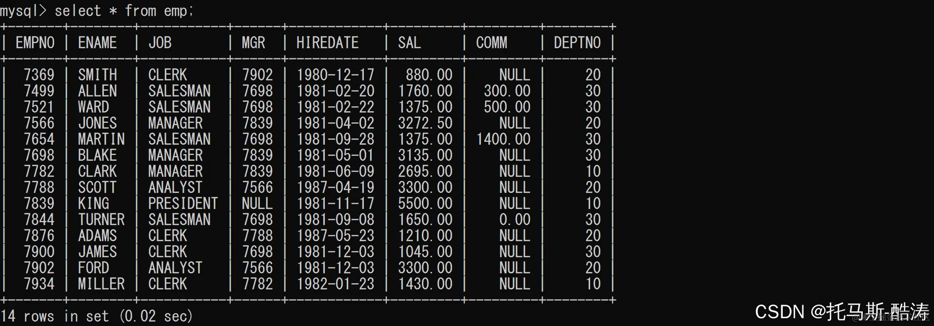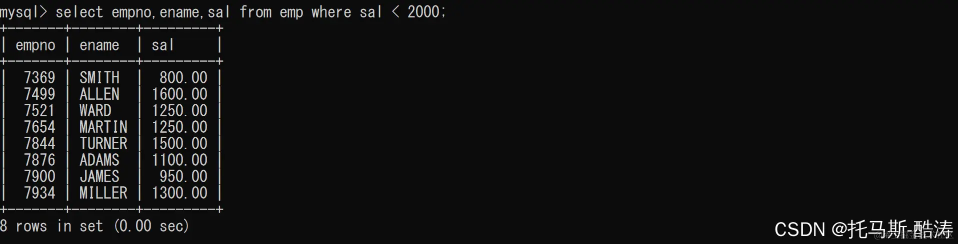 - DQL: 数据查询语言(带有select关键字的都是查询语句) select...