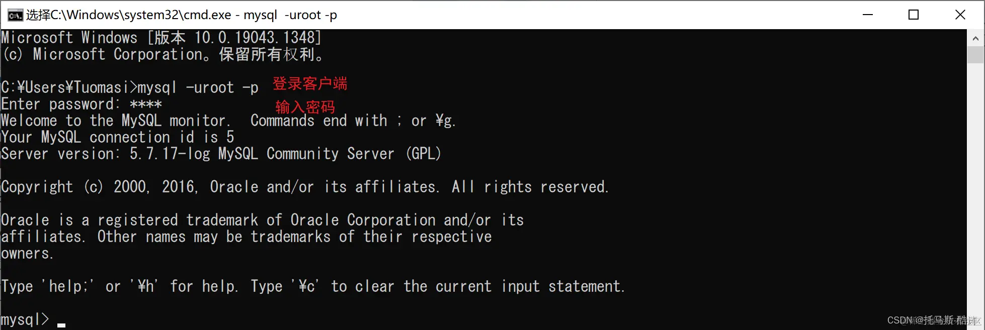 注:在MySQL中,\c用来终止一条命令的输入,不见分号(英文)不执行,分号(英文)表示语句的结束!