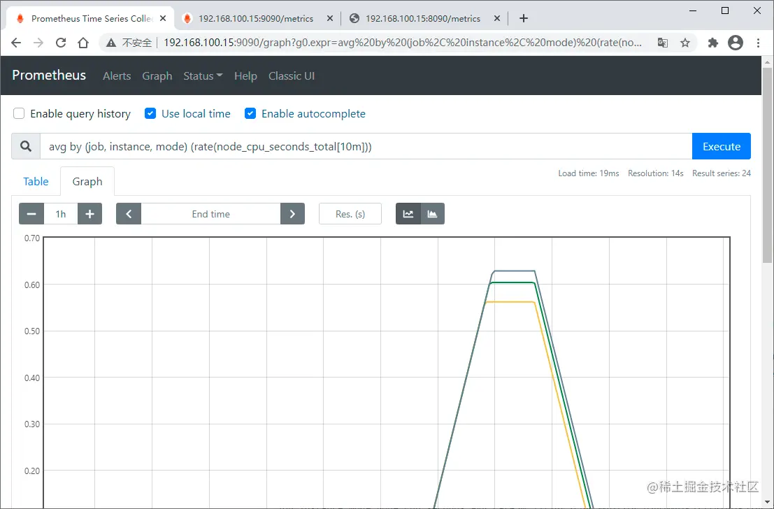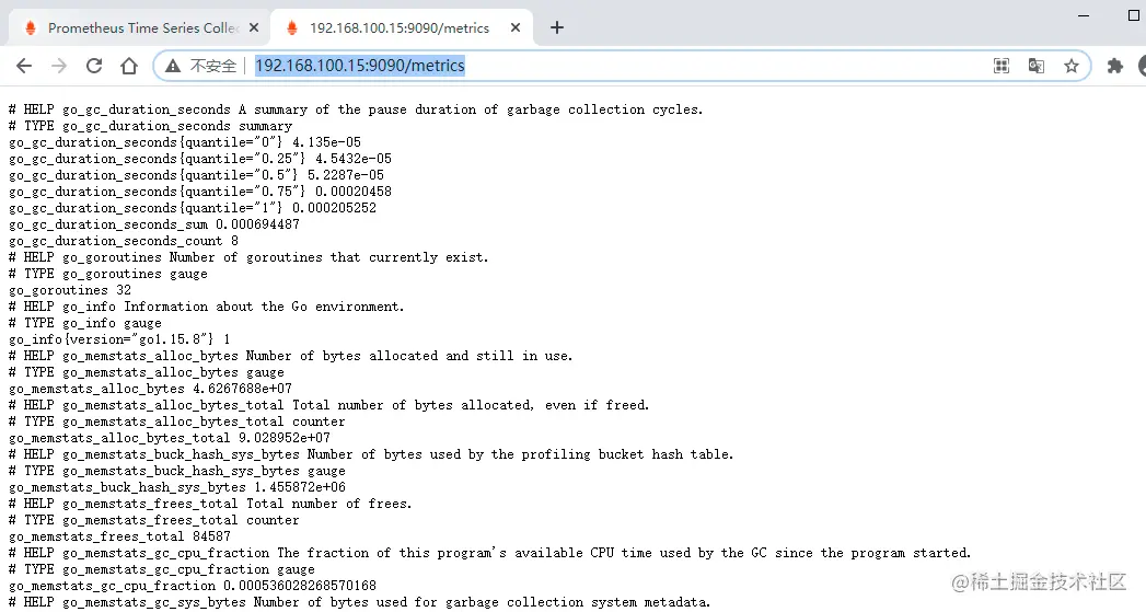 这个是以图形化的方式展示指标,通过localhost:9090/metrics查看也是一样的