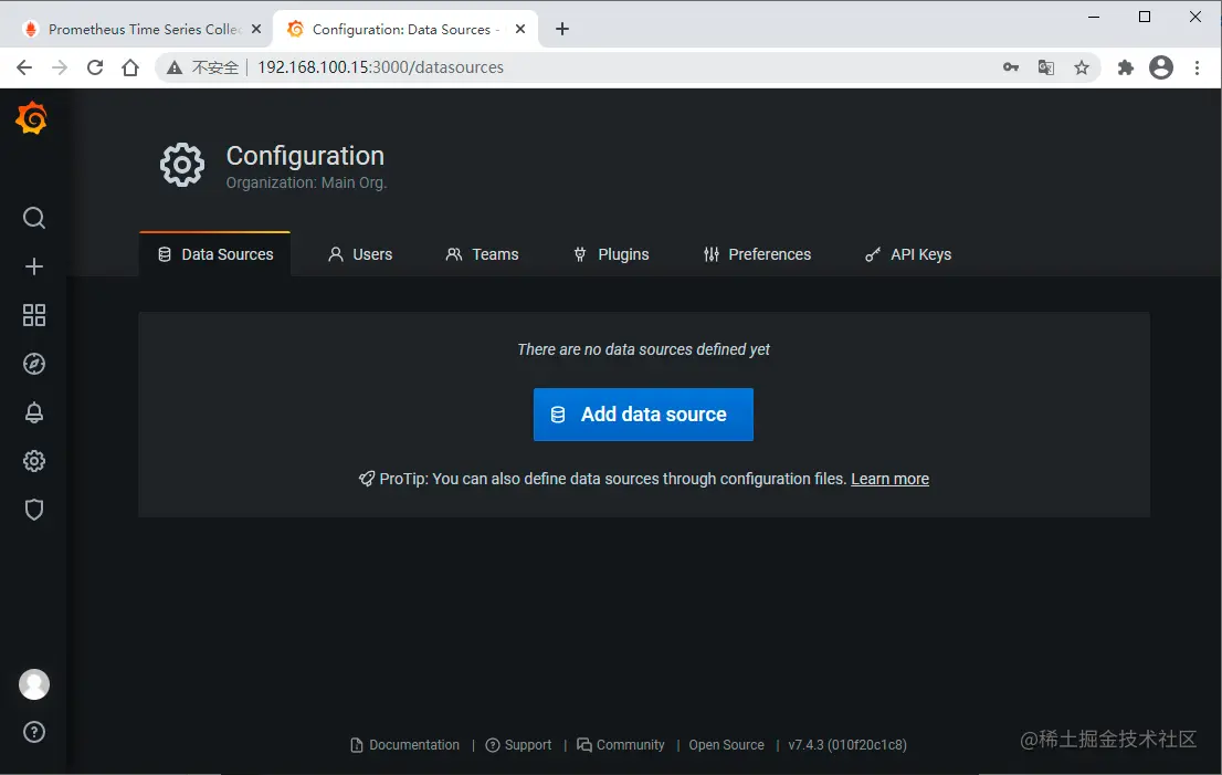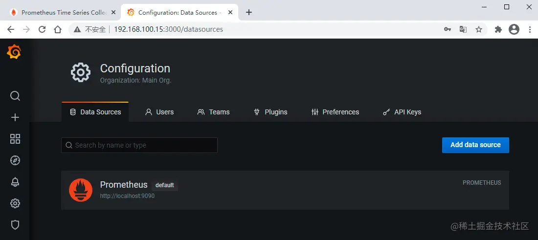先配置一个数据源,一会儿添加仪表盘的时候要选择数据源的