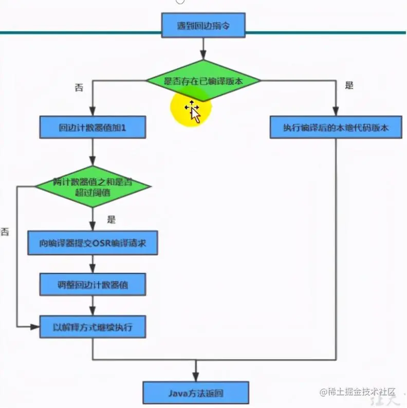 统计一个方法中循环体代码执行的次数。在字节码中遇到控制流向后跳转的指令称为 “回边”。显然,建立回边计数器统计的目的是为了触发OSR 编译( JIT编译)。