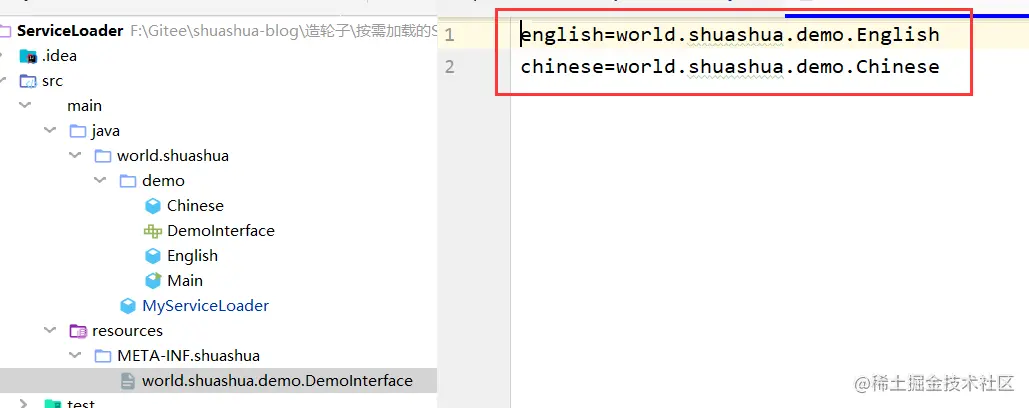 项目已经放到我的Gitee仓库下了,需要的小伙伴可以去下载:刷刷/shuashua-blog/按需加载的SPI/ServiceLoader