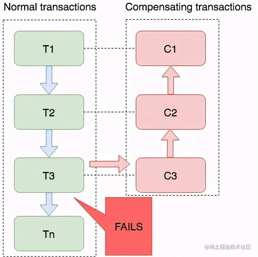 - 状态图中一个节点可以是调用一个服务,节点可以配置它的补偿节点。