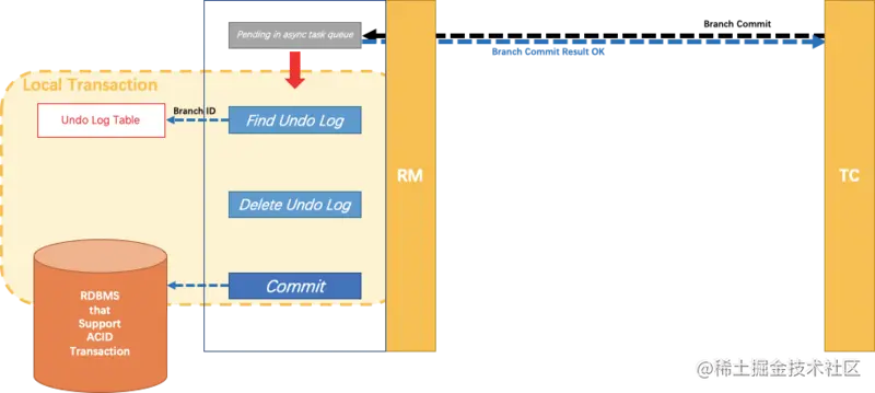 分布式事务操作成功,则TC通知RM异步删除undolog。