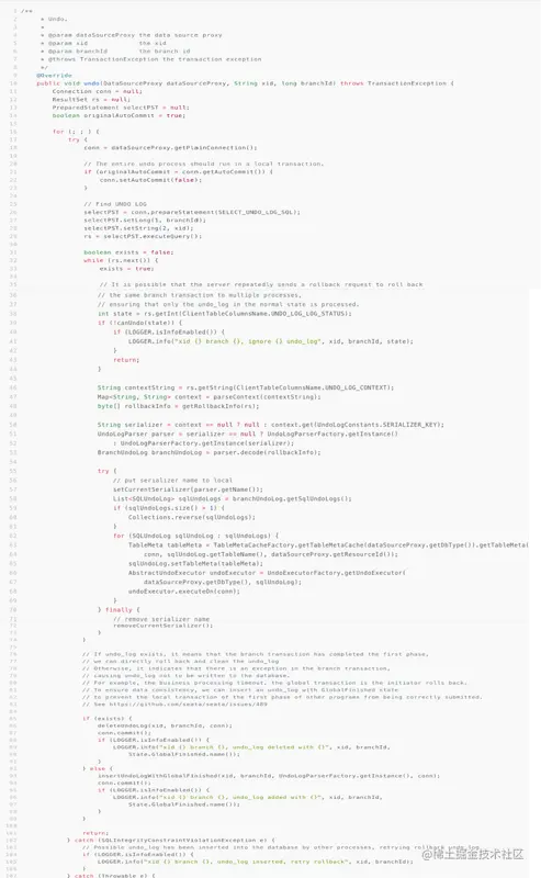具体的实现逻辑在AbstractUndoLogManager#undo中可以看到。