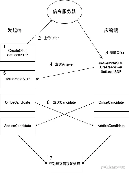 - 相互交换ICE Candidate,通过ICE Candidate回调接受对端ICE Candidate,设置给PeerConnection。