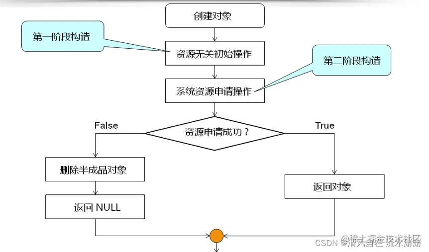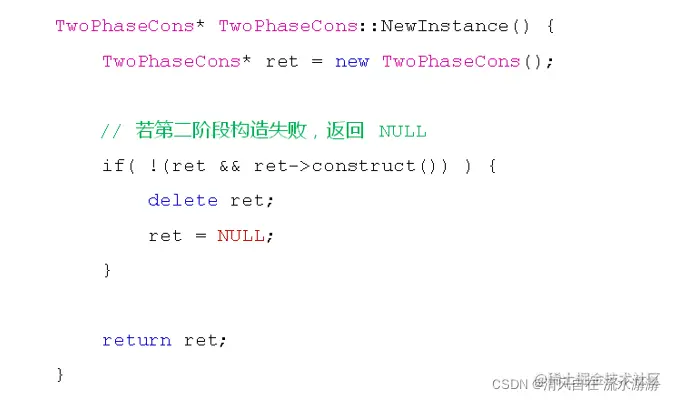 所以二阶构造的意义就是要么得到一个合法可用的对象,要么返回空。二阶构造用于杜绝半成品对象。