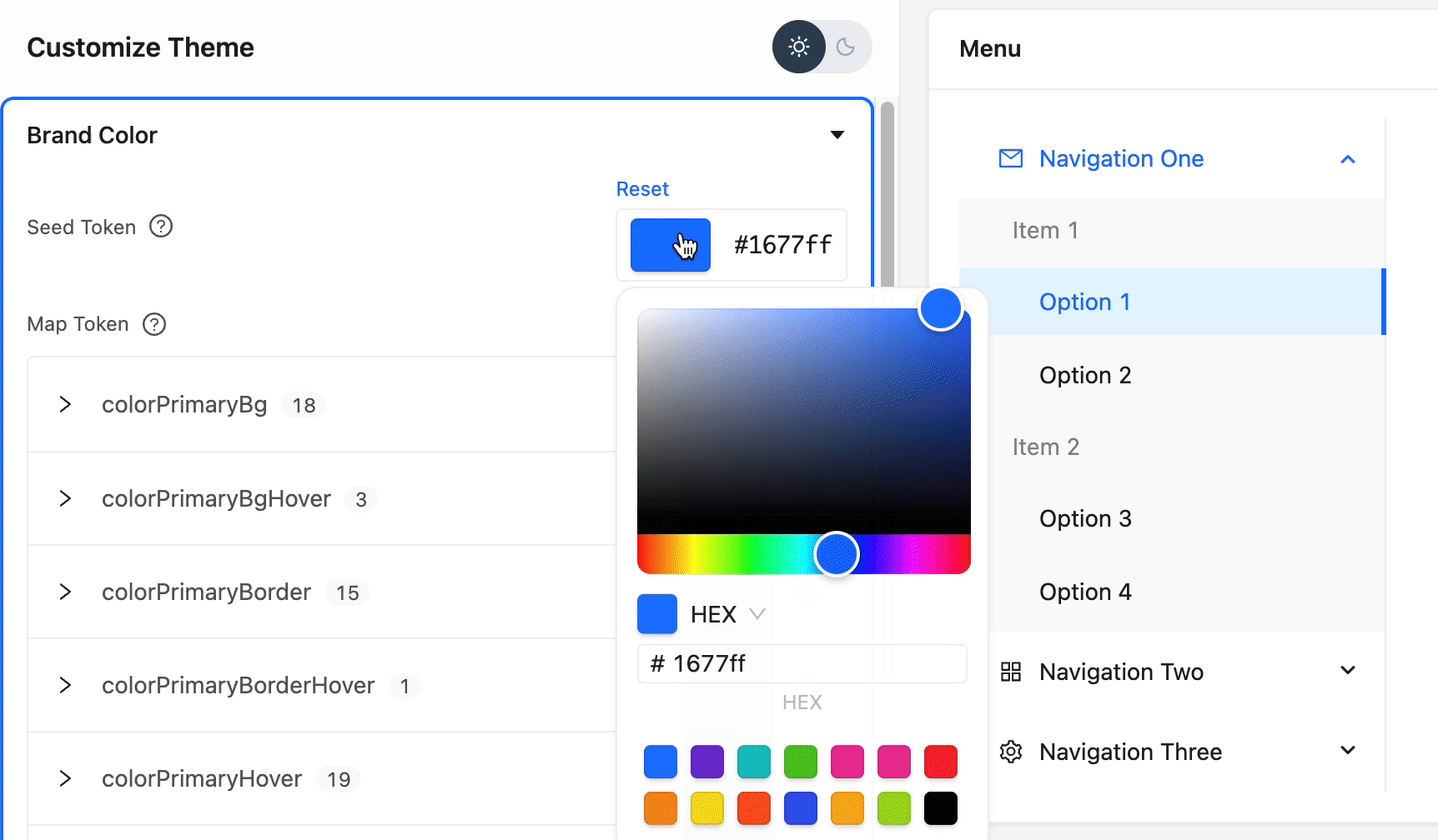 基于 Design Token 和 CSS-in-JS ,我们制定了更加灵活的定制主题方案。通过 5.0 的定制主题,你可以做到的包括但不限于: