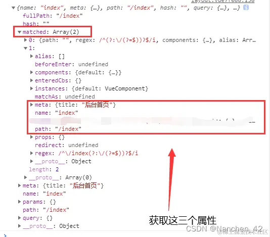 var getobj = this.$route.matched.filter((v) => v.name);