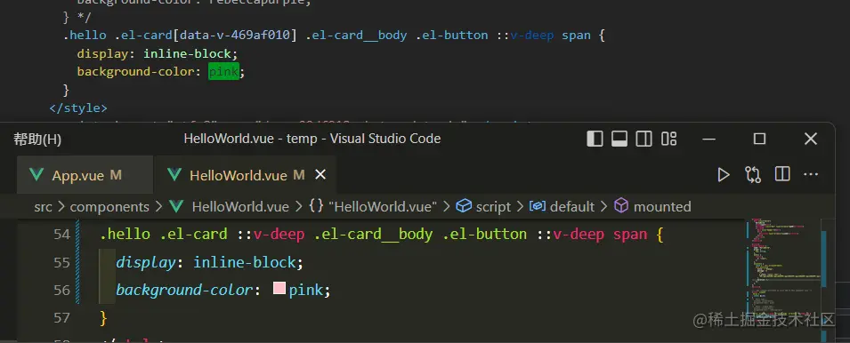 - 添加 scoped 的 style 会给其中所有的选择器的最后加[data-v-xxxxxx]