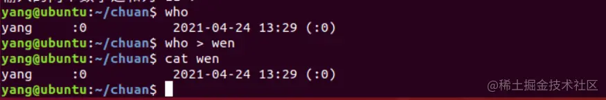 注意:输出重定向是大于号(>),输入重定向是小于号(<)。
