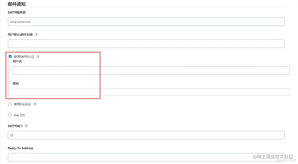既然Jenkins要使用SMTP服务,那么我们就将SMTP服务所对应的地址信息填写到对应项中,SMTP服务所对应的端口是:25
