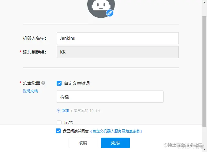 此处内容可以完全复制,这里只需要注意robot和之前在Jenkins内配置的机器人ID一致