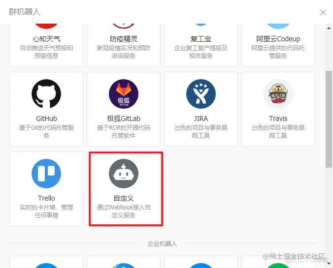 下面我们来直接进行配置介绍, 首先在配置之前需要先在群组中添加机器人,得到对应的WebHooks地址