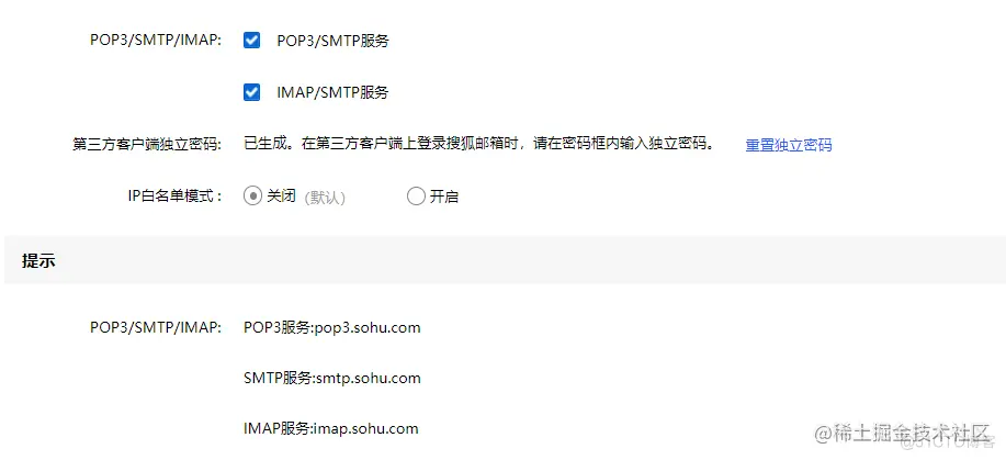 这里的密码并不是邮箱账号本身的密码,而是各位在开启服务的时候生成的第三方客户端独立密码