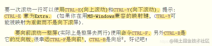 同时你还可以用箭头键来移动光标. 不过这样做实际上会大大降低你的效率. 因为用这些键你需要不停地在字母区和箭头键之间频繁转换. 想象一下要是你在一小时内这样做一百次会占用你多少时间? 另外, 并不是每个键