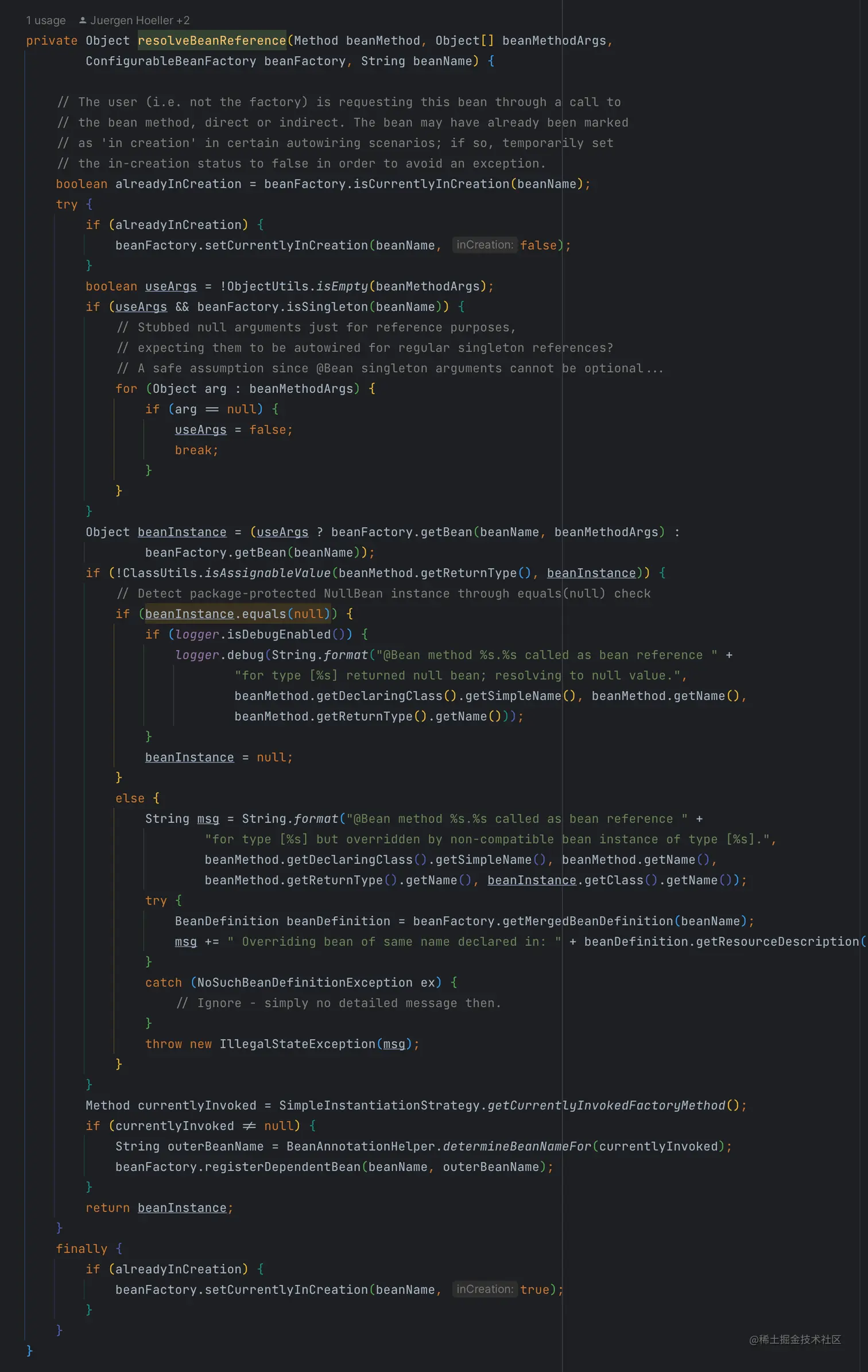 这个方法虽然很长,但是仔细看就会发现逻辑很简单,就是使用 Bean 的名称,从容器中获取实例。