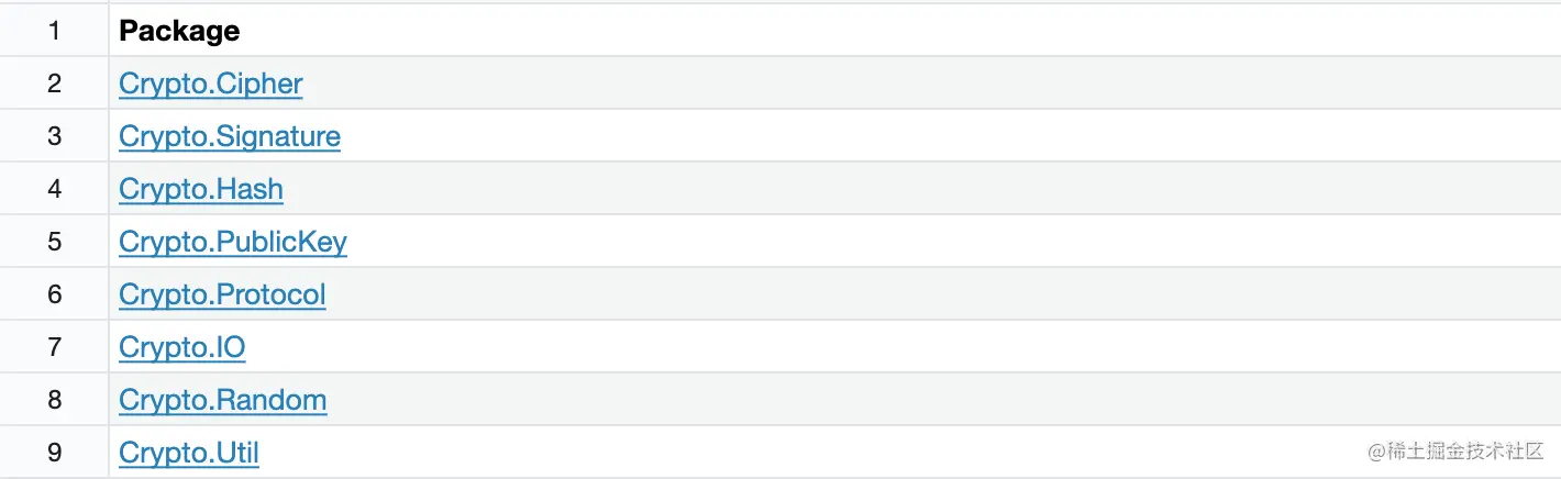 PyCrypto是 Python 中密码学方面最有名的第三方软件包。可惜的是,它的开发工作于2012年就已停止。幸运的是,有一个该项目的分支PyCrytodome 取代了 PyCrypto (支持到2.6.1)这个包里面实现MD2、MD4、MD5、RIPEMD、SHA1、SHA256等加密算法。本文主要是是使用pycryptodome模块的加密,关于PyCrytodomex有兴趣的小伙伴可以参考这里:pypi.org/project/pyc…