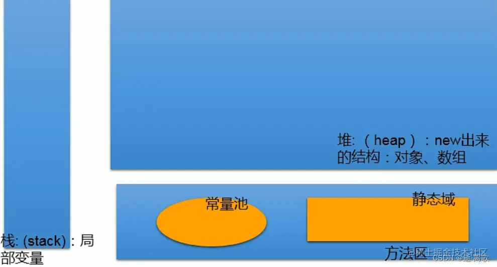 - 方法区:包括常量池、静态区