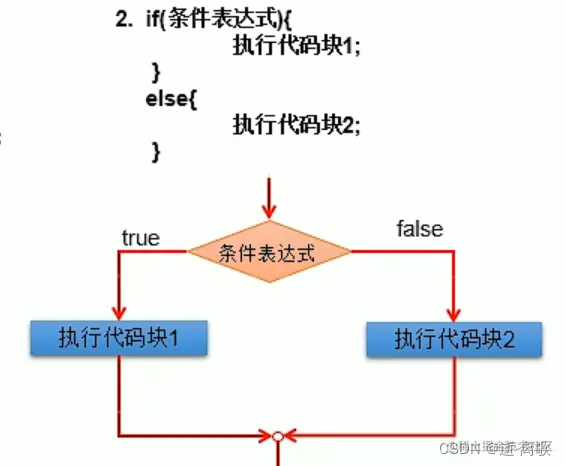 if (条件表达式){ 执行代码块1 }else { 执行代码块2 }
