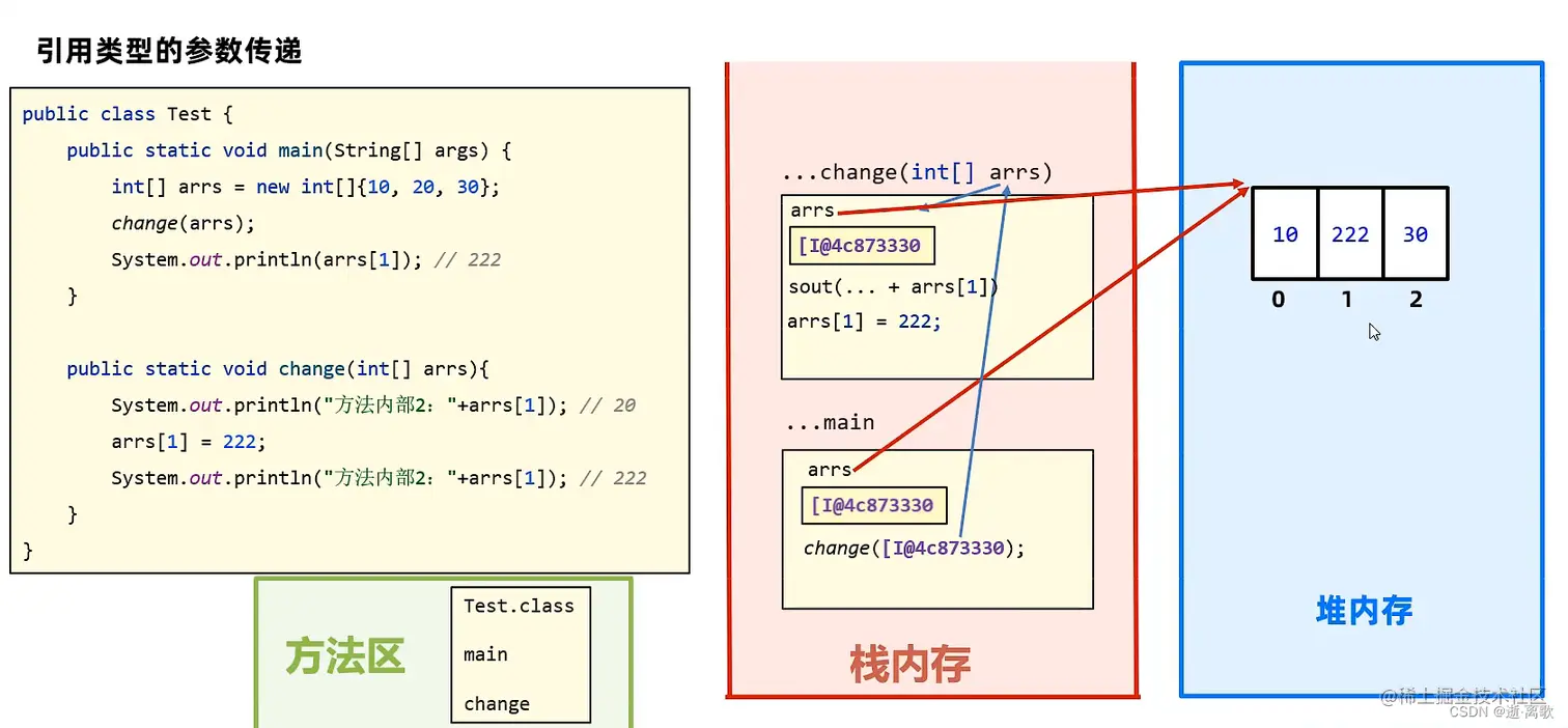 ③引用类型的参数传输存储的地址值。