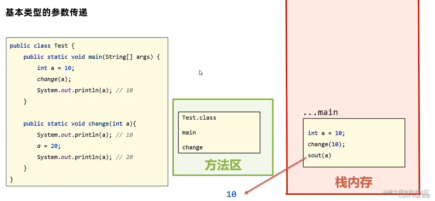 ②基本类型的参数传输存储的数据值;