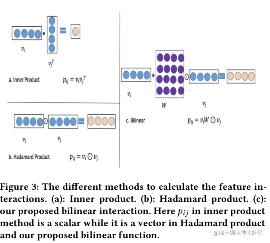 作者提出内积和element-wise乘积都不足以捕捉特征交互信息,因此进一步引入权重W,以下面的方式进行特征交互