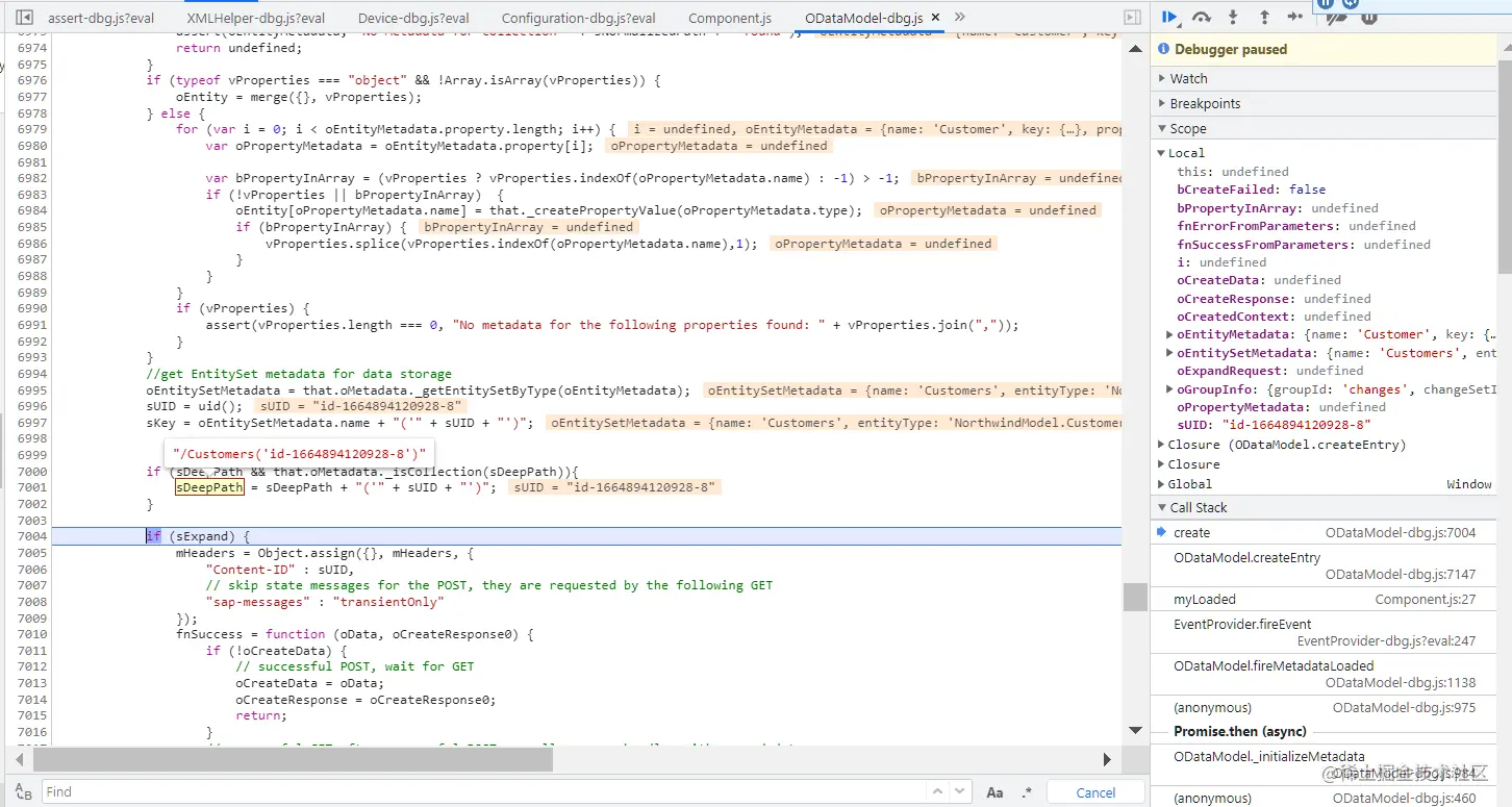 var oContext = oModel.createEntry("/Customers", {
