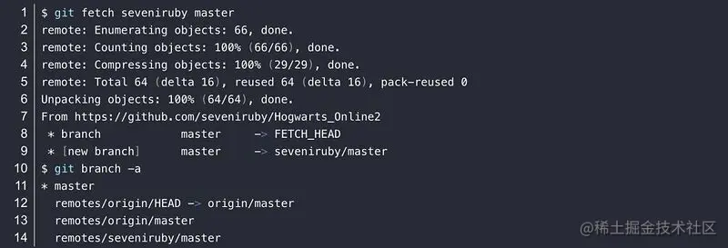 7.2)再将远程端的master分支fetch到本地: