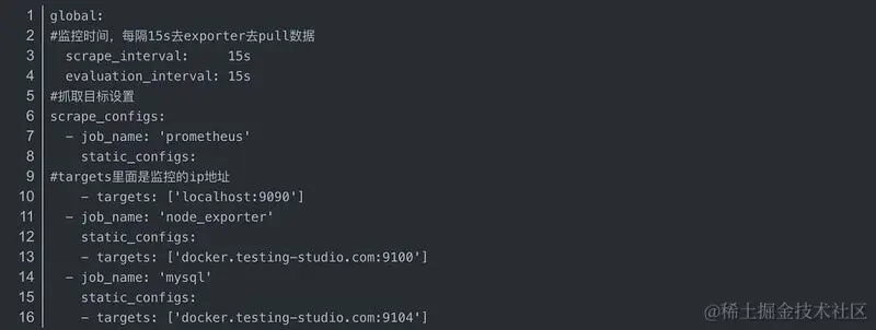 4.在prometheus.yml的配置文件中添加mysql的配置,并docker restart prometheus ,重新加载prometheus的配置(可以参考上面的步骤2)