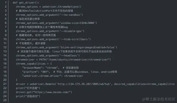注意:如果服务器系统不支持可视化不加这条会启动失败chrome_options.add_argument(’–headless’)