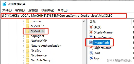 按照路径找到自己的mysql服务注册表