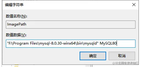 "F:\Program Files\mysql-8.0.30-winx64\bin\mysqld" -defaultPath="F:\Program Files\mysql-8.0.30-winx64\bin\mysqld" MySQL80
