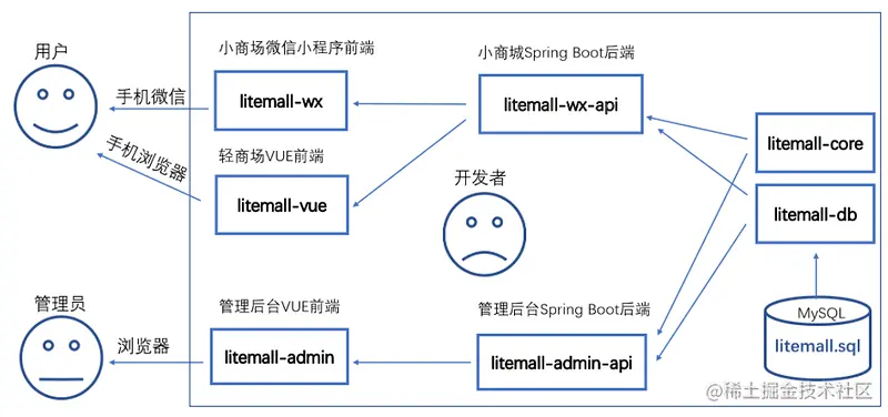 下面以开源项目 litemall 为例,分析一下这个项目中的系统架构。