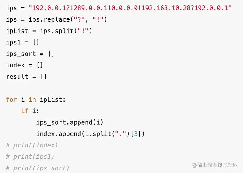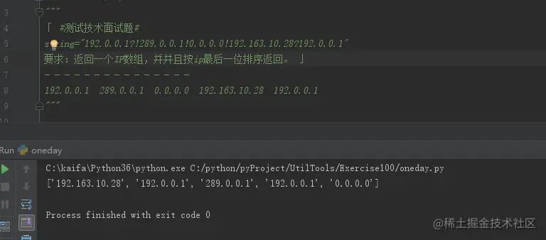【原题要求】:返回一个 IP 数组,并且按 IP 最后一位排序返回。(编程语言随意,只需要能够正确排序返回即可)