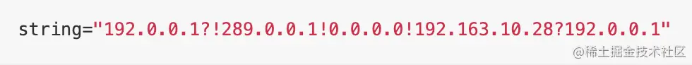 * string="192.0.0.1?!289.0.0.1!0.0.0.0!192.163.10.28?192.0.0.1"
