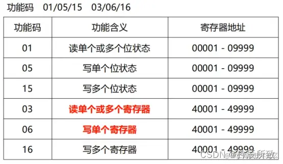 比如: 03H 为 读寄存器功能码; 16H 为 写寄存器功能码。
