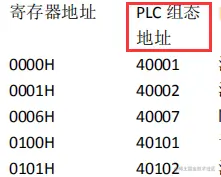 - 寄存器modbus协议地址指通信时使用的寄存器地址,在实际编程中,由于寄存器PLC地址前缀的区分作用,所以只需说明后4位数,而且需转换为4位十六进制地址。例如PLC地址40001对应寻址地址0x0000,40002对应寻址地址0x0001,寄存器寻址地址一般使用16进制描述。再如,PLC寄存器地址40003对应协议地址0002,PLC寄存器地址30003对应协议地址0002。在实际编程中,由于前缀的区分作用,所以只需说明后4位数,而且需转换为4位十六进制地址。