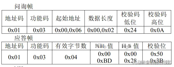 比如: 对于03功能码,后面跟的数据包括 2个字节表示寄存器地址,2个字节表示想要读取的寄存器个数