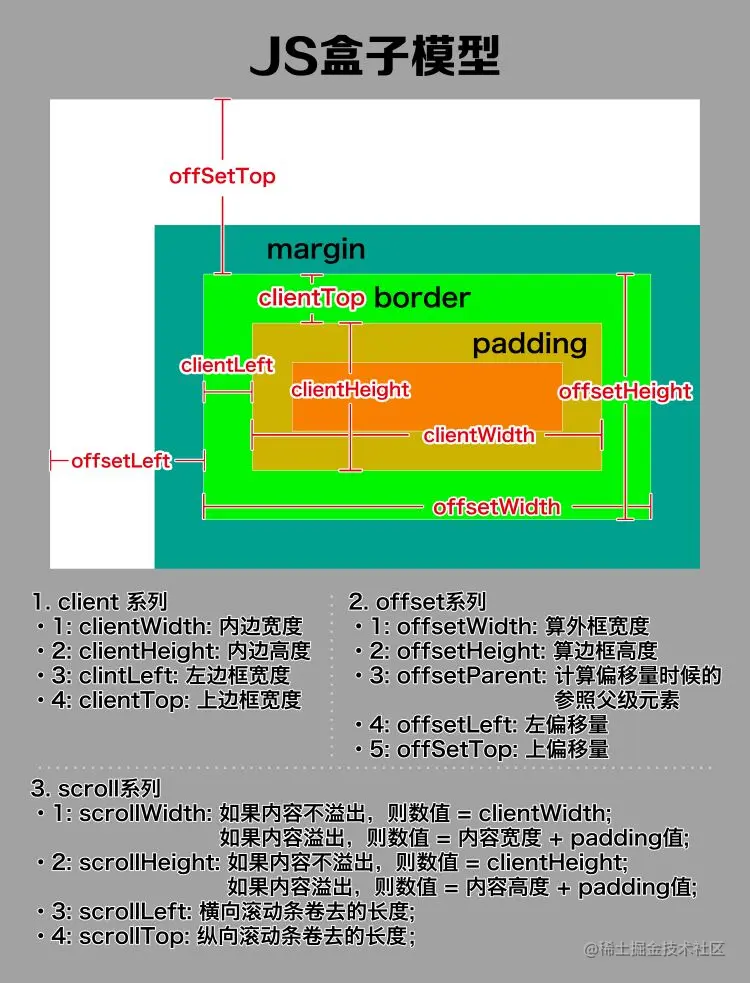 offsetTop:当前盒子距离父级参照物的上偏移量( 当前盒子的外边框距离父级参照物的内边框距离 )