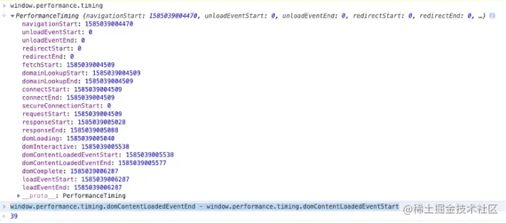 上面的时间只是一个时间点,如果想获取各阶段的具体时间,就需要对两个时间点进行相减运算,比如计算domContent加载事件时间: